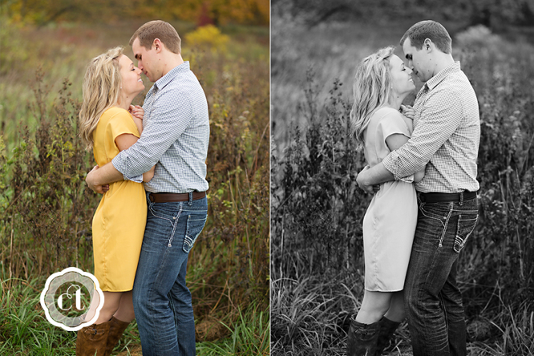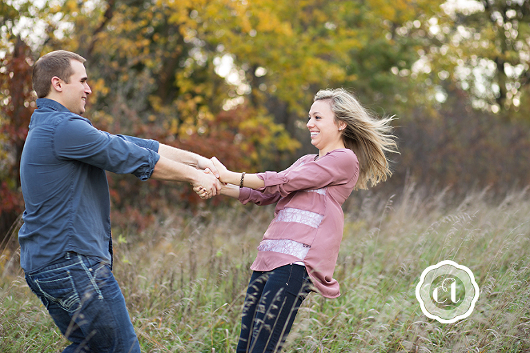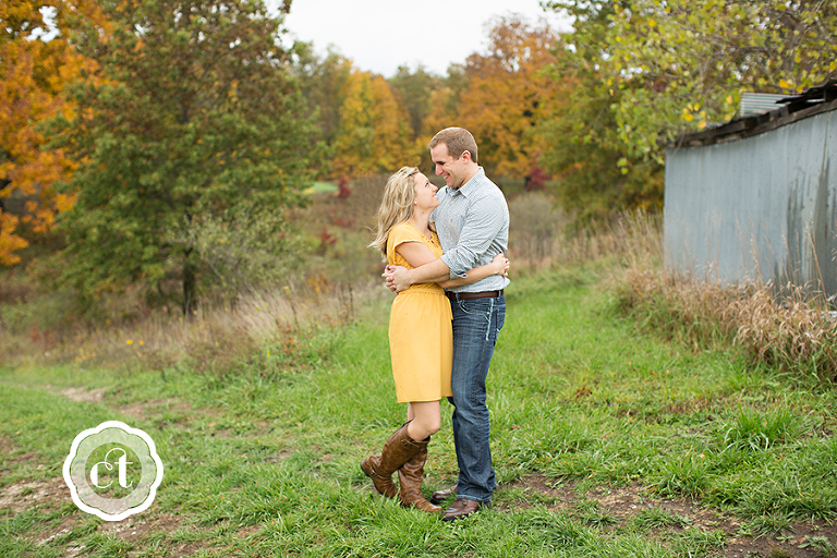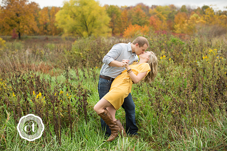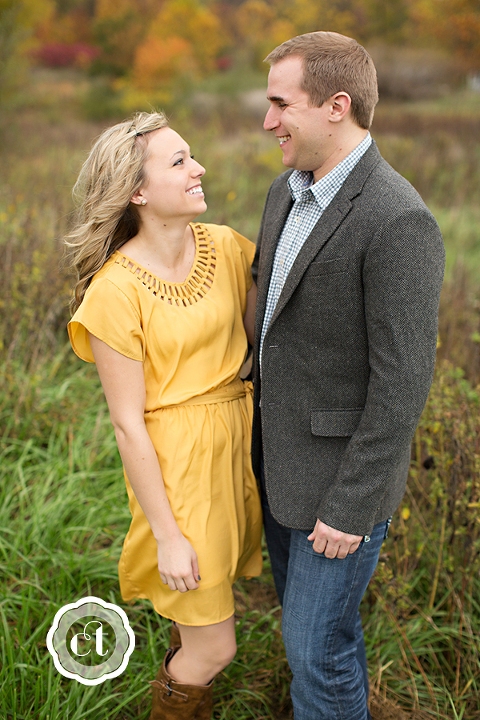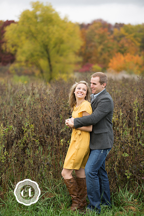 Something must be in the air . . . all of my friends are getting engaged! 🙂 My high school friend, and also former college roommate, Jessica will be walking down the aisle come May! I’m so happy for Jess and fiancé Matt, who traveled from their new home in Springfield, for an engagement celebration and e-session. The fall colors had just hit their peak, and with the help from a little rain the night before, the backdrop was a blur of bright red, orange, and yellow leaves.